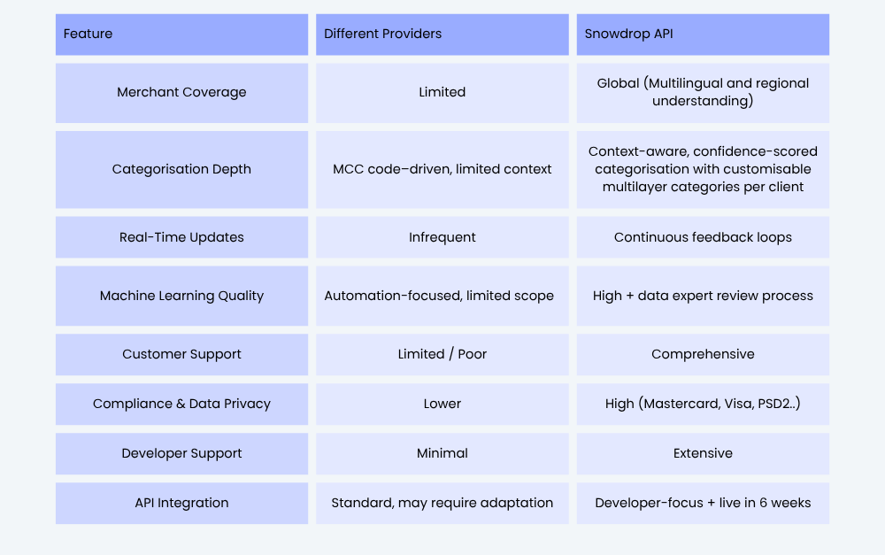 While others offer standard data, Snowdrop API delivers context, speed, and global understanding